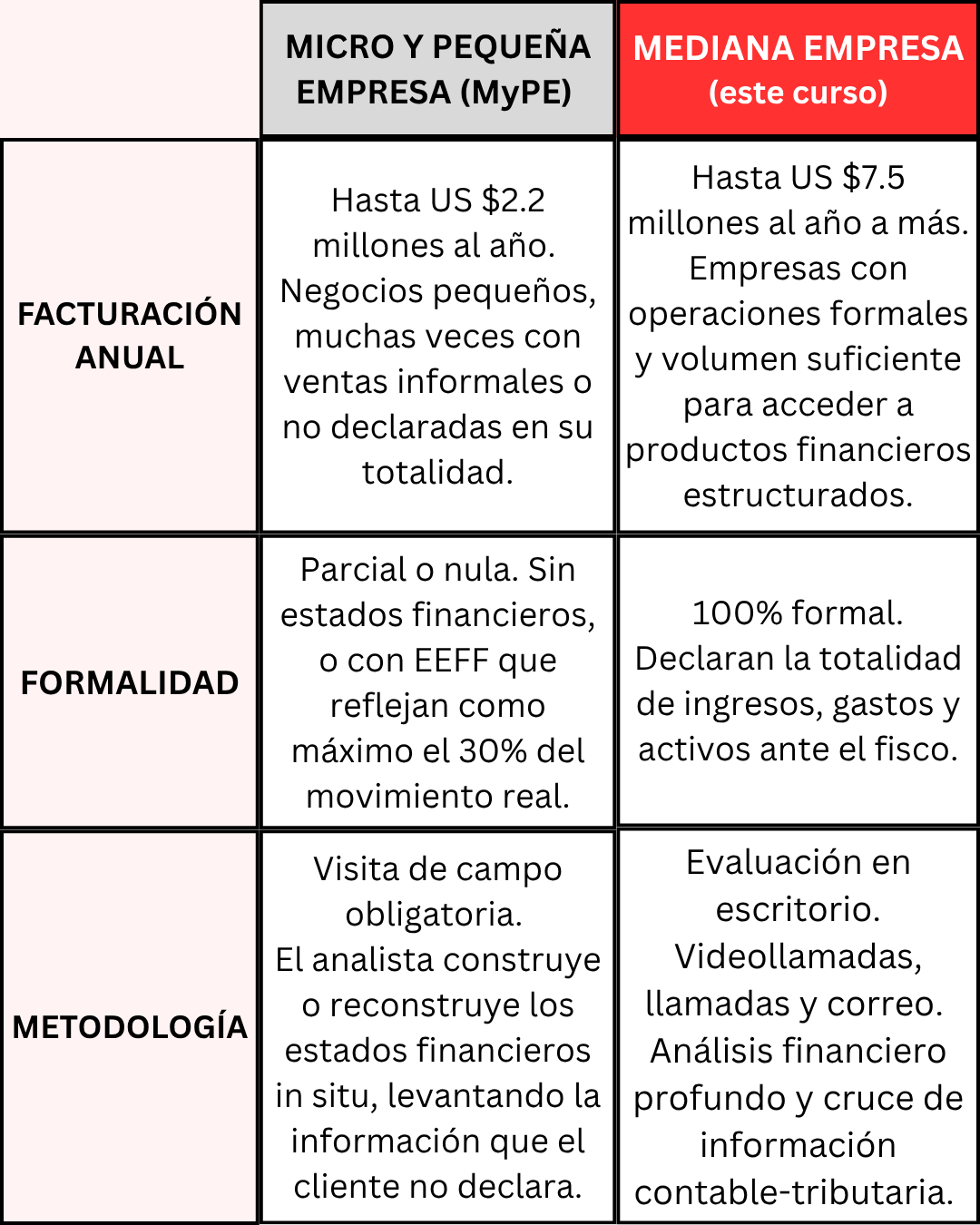 Analista que ya evalúa micro o pequeñas empresas y quiere dar el salto a evaluar medianas empresas