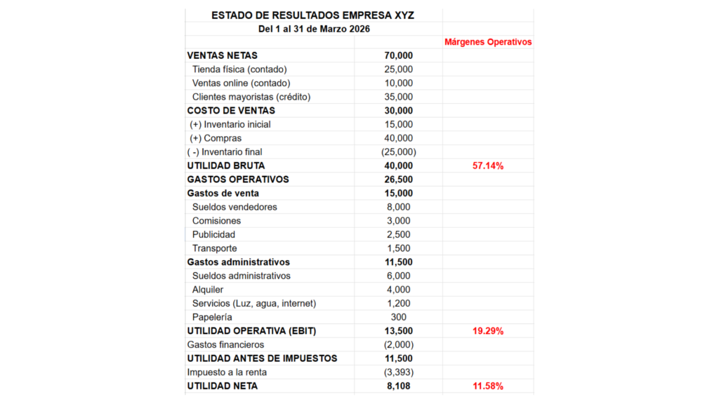 Visto solo este estado, la empresa parece ir bien: márgenes sanos, utilidad neta positiva, incluso margen para asumir más gastos. Pero hay información crítica que este estado no muestra.